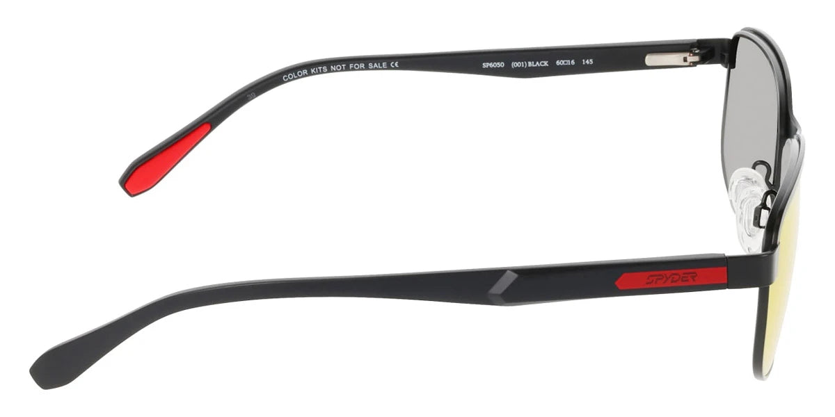 Black (001) Sunglasses (SP6050 001 60) by Spyder™. Size: 60-16-140, Shape: Rectangle, Material: Metal.