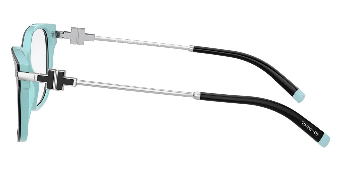 Black On TIFFANY Blue (8055) Eyeglasses (TF2207 8055 52) by TIFFANY™. Size: 52-15-140, Shape: Rectangle, Material: Metal and Plastic.