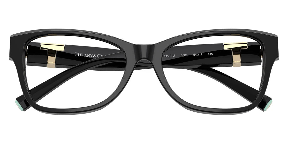 Black (8420) Eyeglasses (TF2272U 8420 52) by TIFFANY. Size: 52-17-140, Shape: Butterfly, Material: Acetate and Metal.