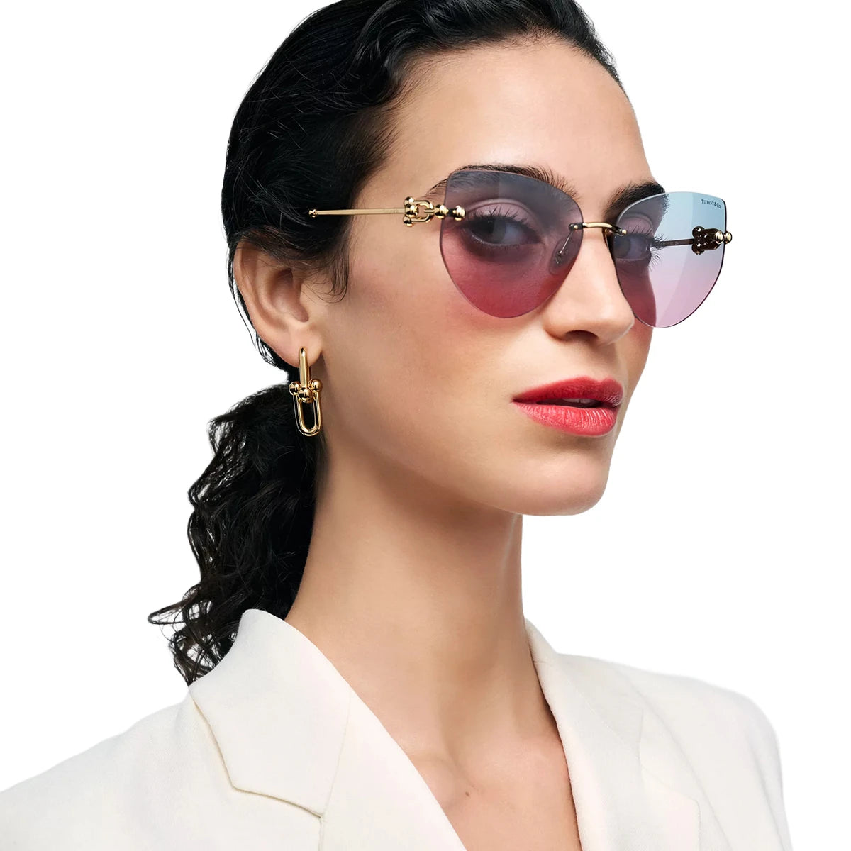 TF3096 Sunglasses by TIFFANY™. The butterfly shape design feature a rimless metal frame. This model is available in five different color combinations and sizes. There is hardly a person who does not know the name of TIFFANY & Co which is a famous jewelry company with a bicentennial history. TIFFANY brand is not only exquisite jewelry items of the highest quality, but also the embodiment of the era of impeccable style and aristocracy, a symbol of luxury and success. TIFFANY sunglasses are sought-after examples of style, femininity and excellent quality. They are characterized by a variety of shapes, color options, exquisite finishing of the earhooks and beautiful decor.