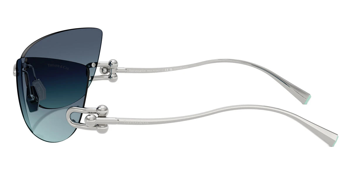 Silver Gold Plated (62139S) Sunglasses with Azure Gradient Blue lenses (TF3112K 62139S 72) by TIFFANY™. Size: 72-15-115, Shape: Irregular, Material: Metal.