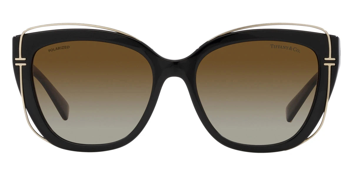 Black (80013B) Sunglasses with Brown Gradient lenses (TF4148 80013B 54) by TIFFANY™. Size: 54-17-140, Shape: Cat-Eye, Material: Plastic.