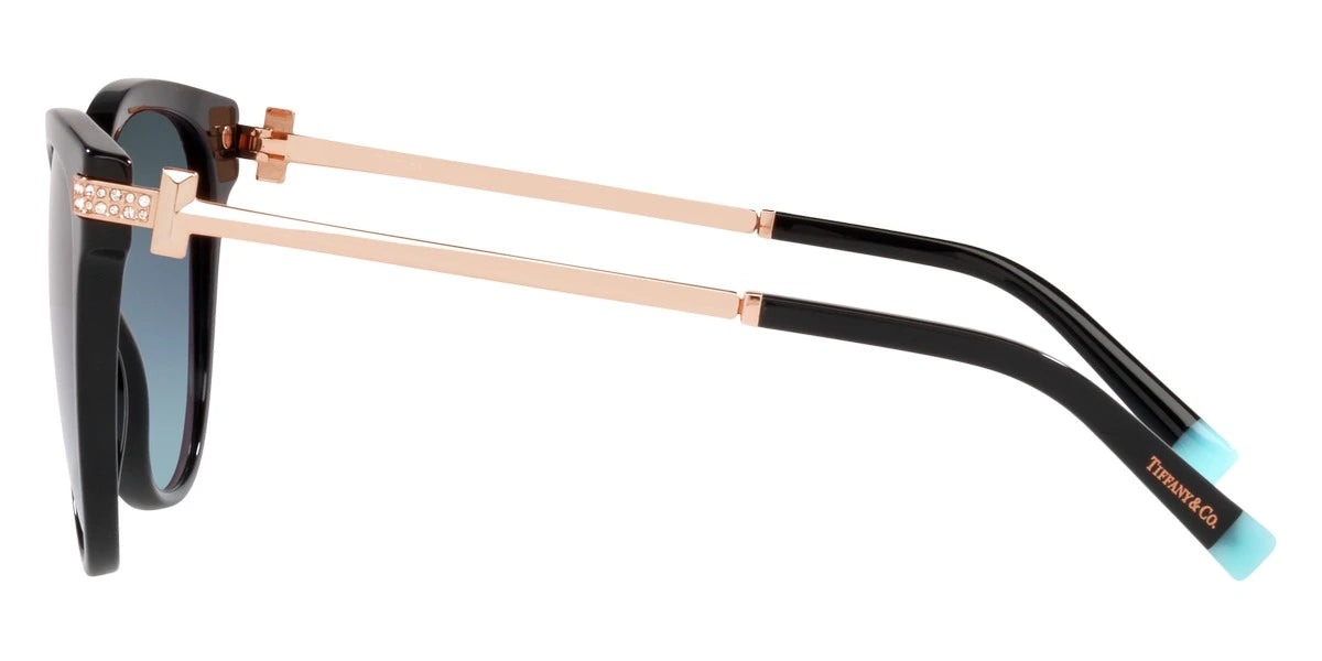 Black (80019S) Sunglasses with Azure Gradient Blue lenses (TF4193B 80019S 55) by TIFFANY™. Size: 55-17-140, Shape: Square, Material: Plastic and Metal.