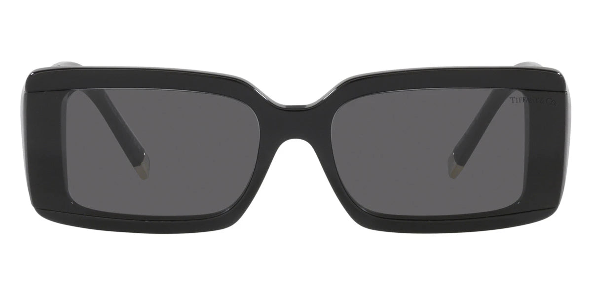 Black (80019S) Sunglasses with Azure Gradient Blue lenses (TF4197 80019S 62) by TIFFANY™. Size: 62-17-140, Shape: Rectangle, Material: Plastic and Metal.