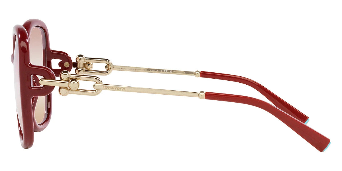Solid Burgundy (8380EL) Sunglasses with Gradient Pink Gradient Brown lenses (TF4202U 8380EL 57) by TIFFANY™. Size: 57-19-135, Shape: Square, Material: Injected and Metal.