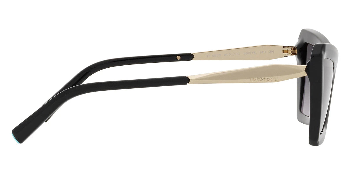 Black (80013C) Sunglasses with Gray Gradient lenses (TF4203 80013C 56) by TIFFANY™. Size: 56-16-140, Shape: Cat-Eye, Material: Acetate and Metal.
