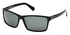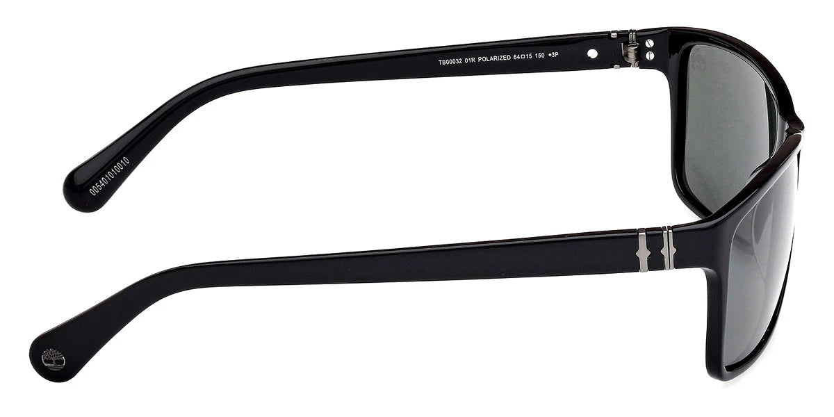 Shiny Black (01R) Sunglasses with Green Polarized lenses (TB00032 01R 64) by Timberland™. Size: 64-15-150, Shape: Rectangle, Material: Plastic.