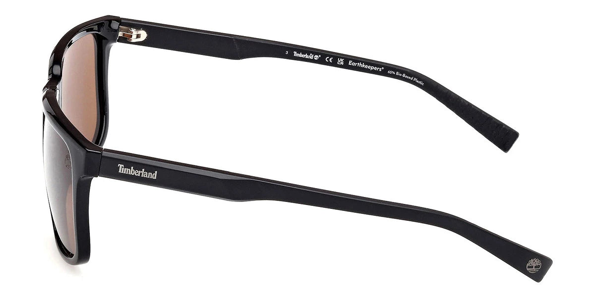 Shiny Black/Matte Black (01H) Sunglasses with Brown Polarized lenses (TB00037 01H 59) by Timberland™. Size: 59-17-140, Shape: Square, Material: Injected.
