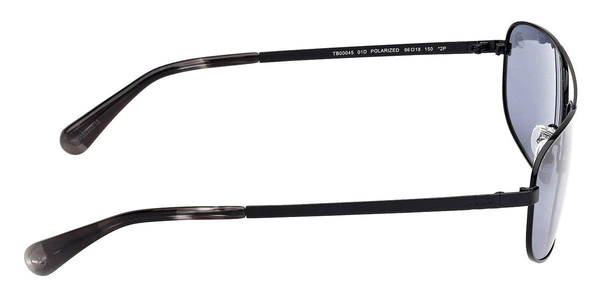 Shiny Black (01D) Sunglasses with Smoke Polarized lenses (TB00045 01D 66) by Timberland™. Size: 66-18-150, Shape: Aviator, Material: Metal.
