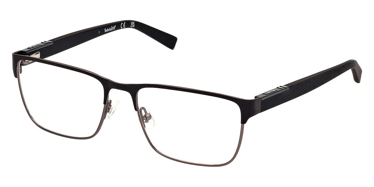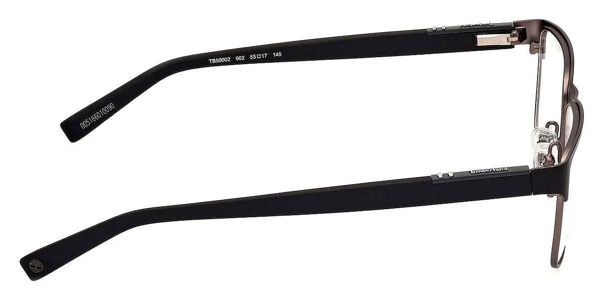 Matte Black (002) Eyeglasses (TB50002 002 55) by Timberland™. Size: 55-17-145, Shape: Rectangle, Material: Metal.
