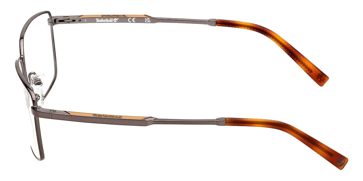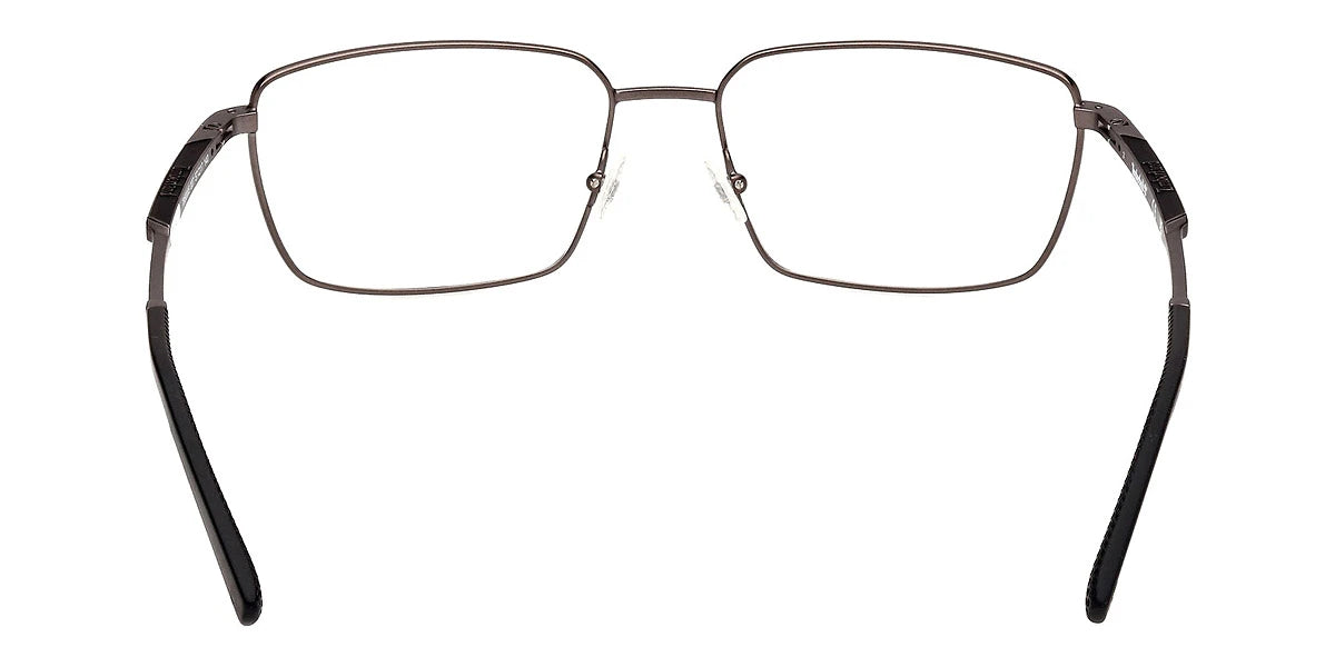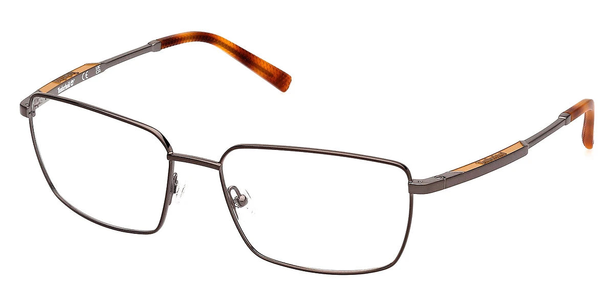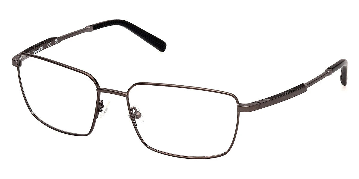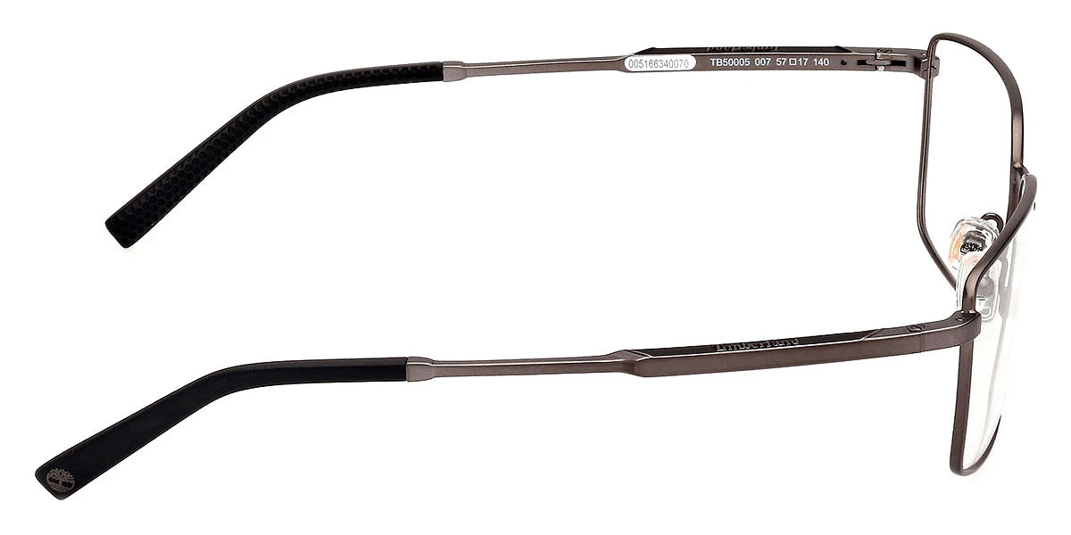 Shiny Gunmetal (006) Eyeglasses (TB50005 006 57) by Timberland™. Size: 57-17-140, Shape: Rectangle, Material: Metal.