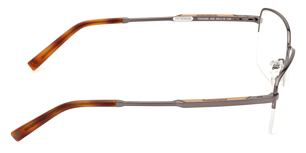 Shiny Light Ruthenium (010) Eyeglasses (TB50006 010 56) by Timberland™. Size: 56-19-140, Shape: Rectangle, Material: Metal.