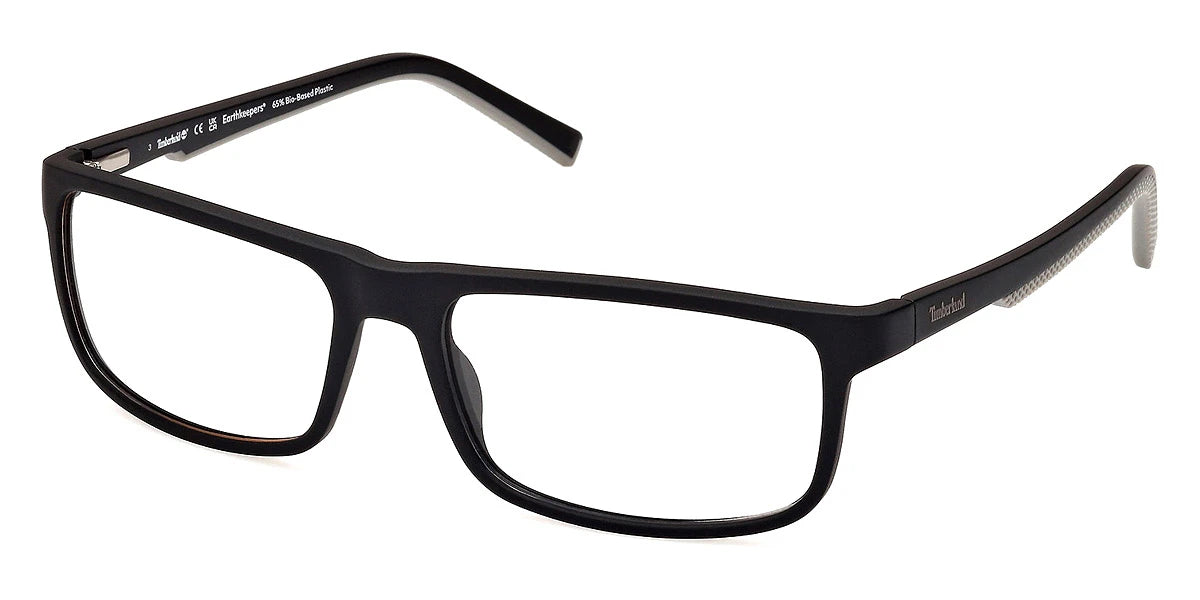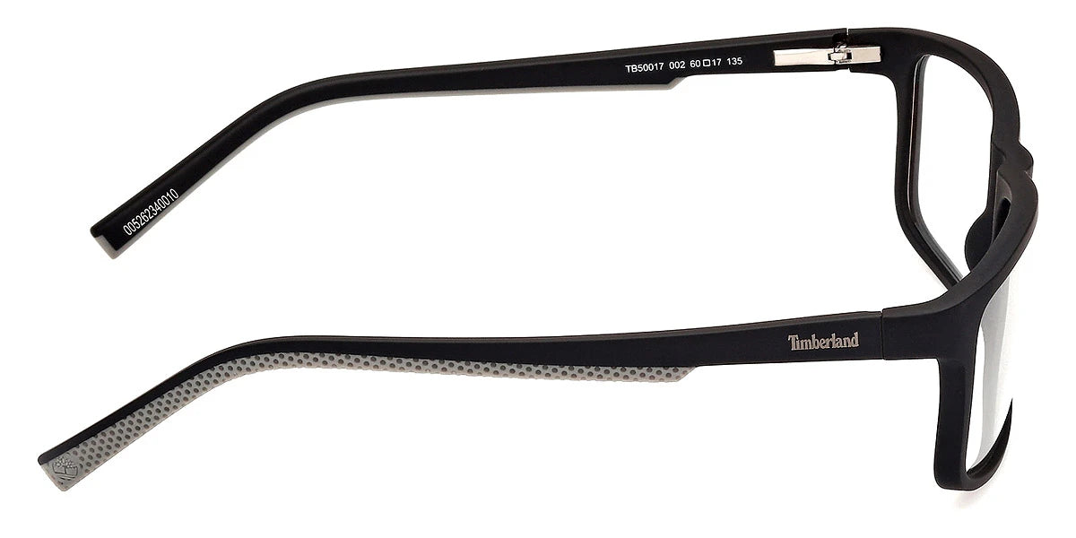 Matte Black (002) Eyeglasses (TB50017 002 60) by Timberland™. Size: 60-17-135, Shape: Rectangle, Material: Injected.