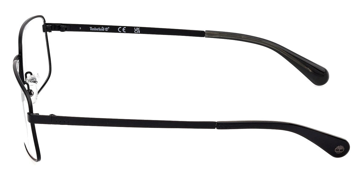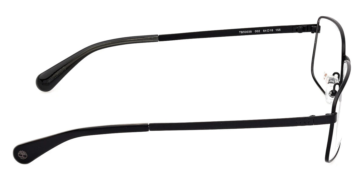 Matte Black (002) Eyeglasses (TB50038 002 64) by Timberland™. Size: 64-18-155, Shape: Rectangle, Material: Metal.