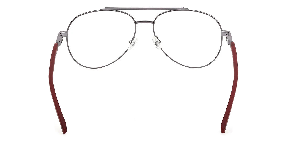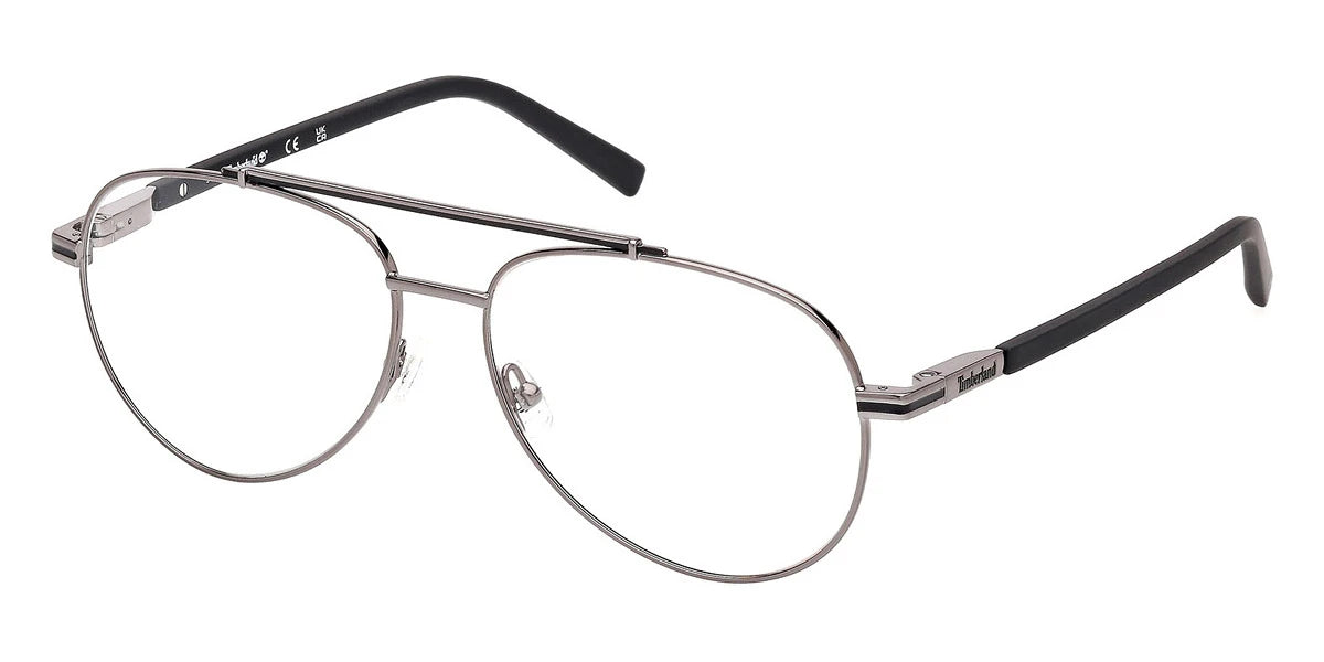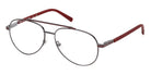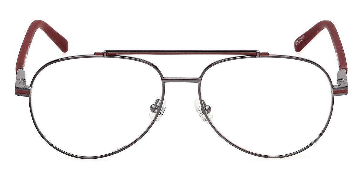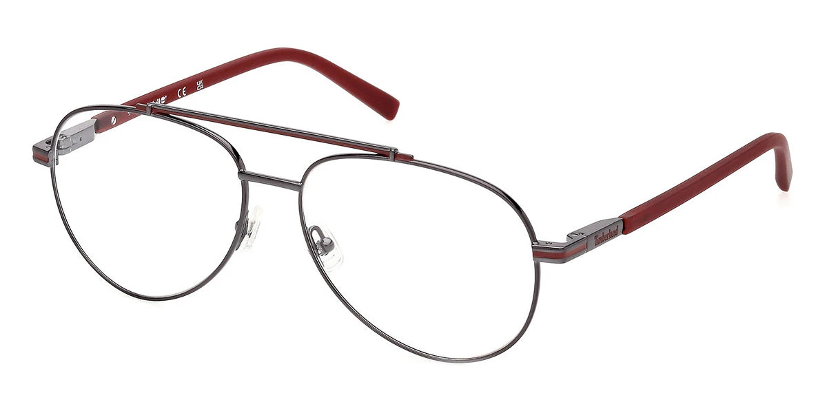 Shiny Dark Ruthenium/Shiny Dark Red (006) Eyeglasses (TB50050 006 57) by Timberland™. Size: 57-15-145, Shape: Aviator, Material: Metal.