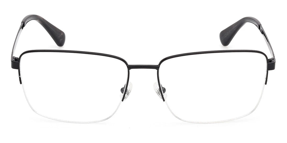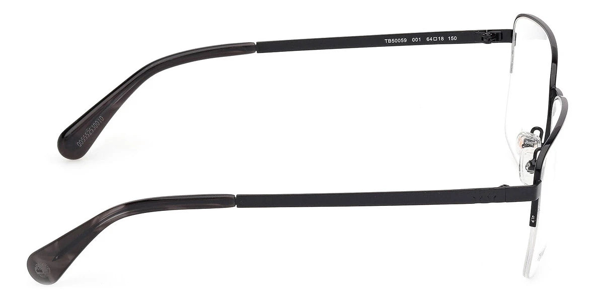 Shiny Black (001) Eyeglasses (TB50059 001 64) by Timberland™. Size: 64-18-150, Shape: Rectangle, Material: Metal.
