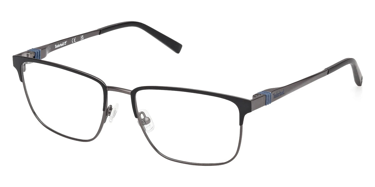 Matte Blue/Matte Gunmetal (091) Eyeglasses (TB50070 091 54) by Timberland™. Size: 54-17-145, Shape: Square, Material: Metal.