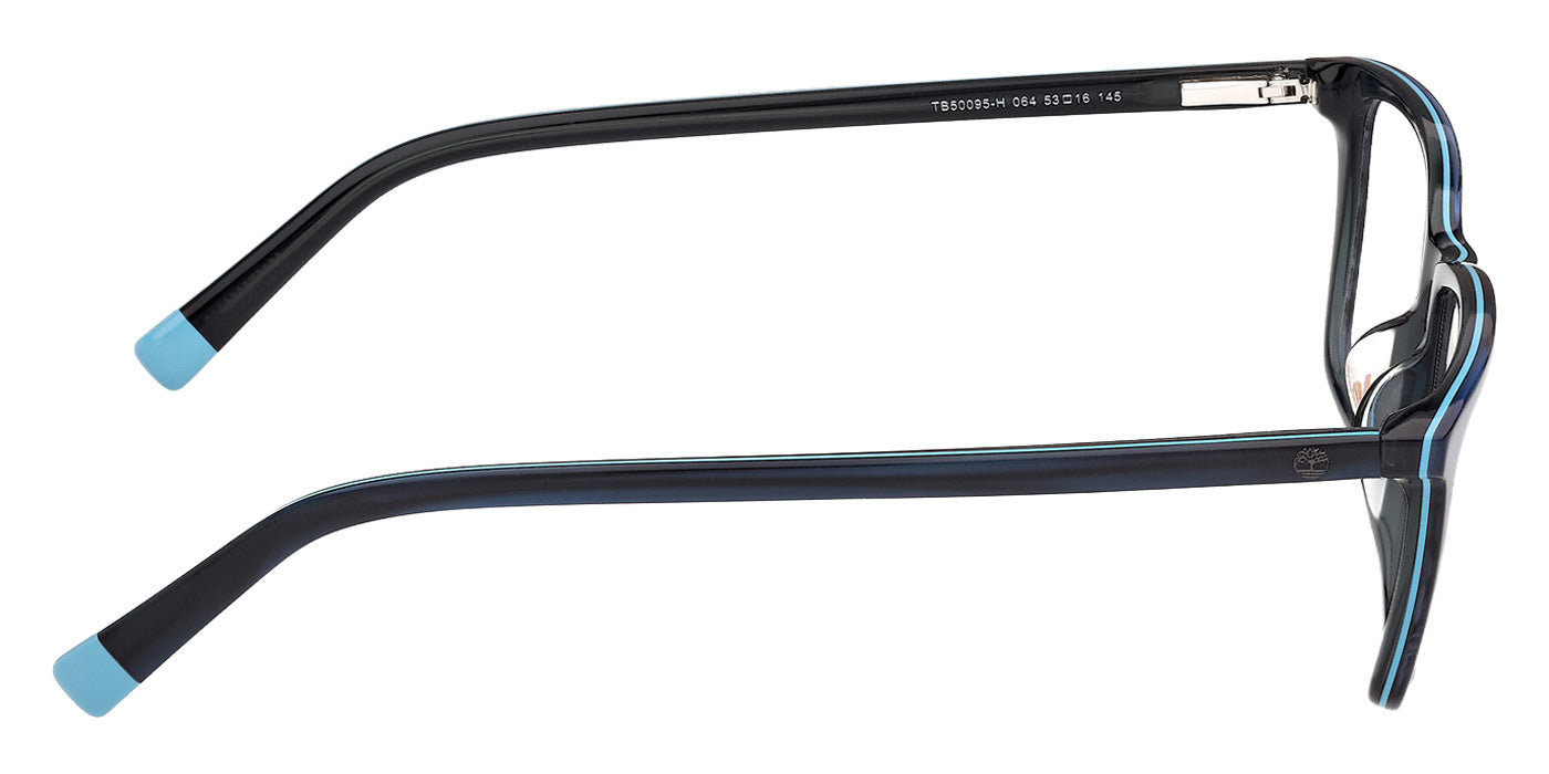 Shiny Black (001) Eyeglasses (TB50095-H 001 53) by Timberland. Size: 53-16-145, Shape: Rectangle, Material: Plastic.