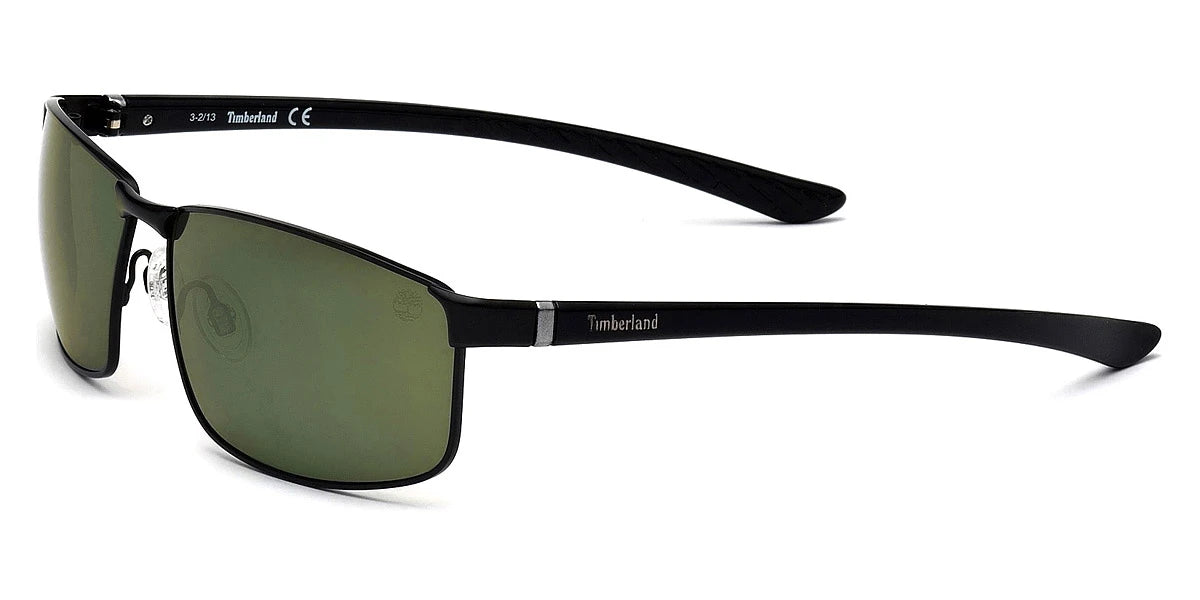 Satin Black (02R) Sunglasses with Green Flash Mirrored lenses (TB9035 02R 61) by Timberland™. Size: 61-14-135, Shape: Rectangle, Material: Metal.