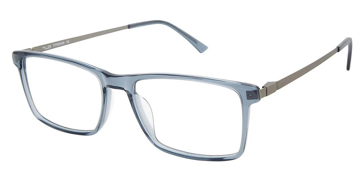 Translucent Blue/Gunmetal (c02) Eyeglasses (NU058 c02 55) by TLG™. Size: 55-17-145, Shape: Square, Material: Plastic and Titanium.
