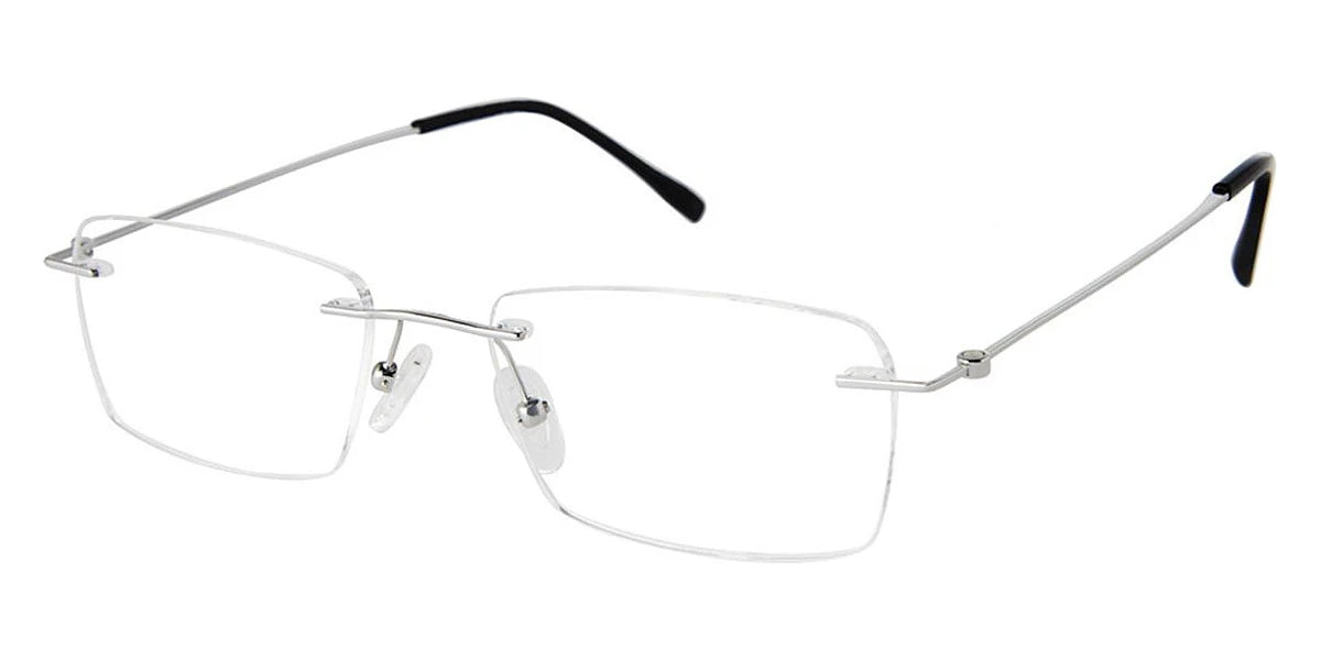 Silver (c02) Eyeglasses (NU071 c02 54) by TLG™. Size: 54-18-145, Shape: Rectangle, Material: Titanium.