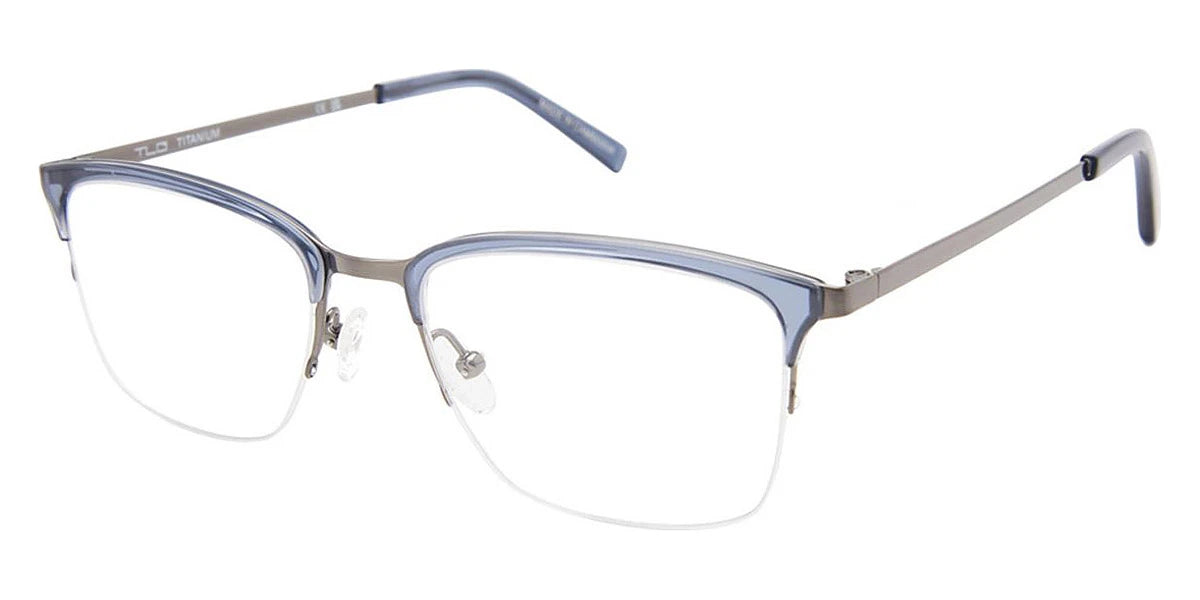 Blue (c03) Eyeglasses (NU078 c03 53) by TLG™. Size: 53-19-145, Shape: Browline, Material: Plastic and Metal.
