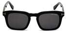 Shiny Black/Shiny Black T (01A) Sunglasses with Smoke lenses (FT0751-N Dax 01A 50) by Tom Ford™. Size: 50-22-145, Shape: Square, Material: Plastic.