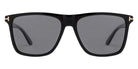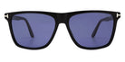 Shiny Black (01V) Sunglasses with Blue lenses (FT0832 Fletcher 01V 57) by Tom Ford™. Size: 57-15-145, Shape: Square, Material: Plastic.