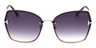 FT1107 Nickie-02 Sunglasses by Tom Ford™. The butterfly shape design feature a rimless metal frame. This model is available in three different color combinations and sizes. Tom Ford is a trendsetter and the iconic figure in the fashion world, known for his eye-catching designs that express glamorous allure and modernity. Proudly made in Italy, Tom Ford sunglasses are guaranteed to provide both exceptional quality and outstanding look. Each frame is crafted with a meticulous attention to the tiniest detail to meet the aesthetic needs of the most fashion-forward sun lovers. The sunglasses are an opulent combination of timeless silhouettes and modern influences. All models come enriched by the elegant metal “T” logo, the undisputed symbol of the renowned brand.