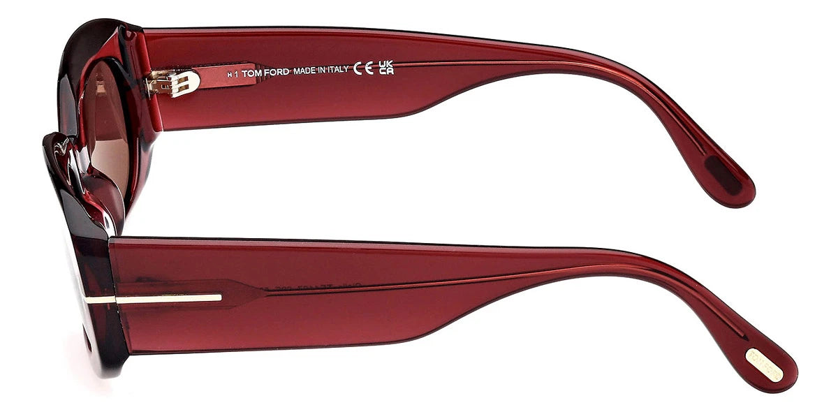Shiny Bordeaux (69E) Sunglasses with Brown lenses (Cielle FT1187 69E 52) by Tom Ford™. Size: 52-20-140, Shape: Oval, Material: Plastic.