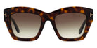 Dark Havana (52B) Sunglasses with Gradient Smoke lenses (FT1191 Luna 52B 52) by Tom Ford™. Size: 52-19-140, Shape: Butterfly, Material: Plastic.
