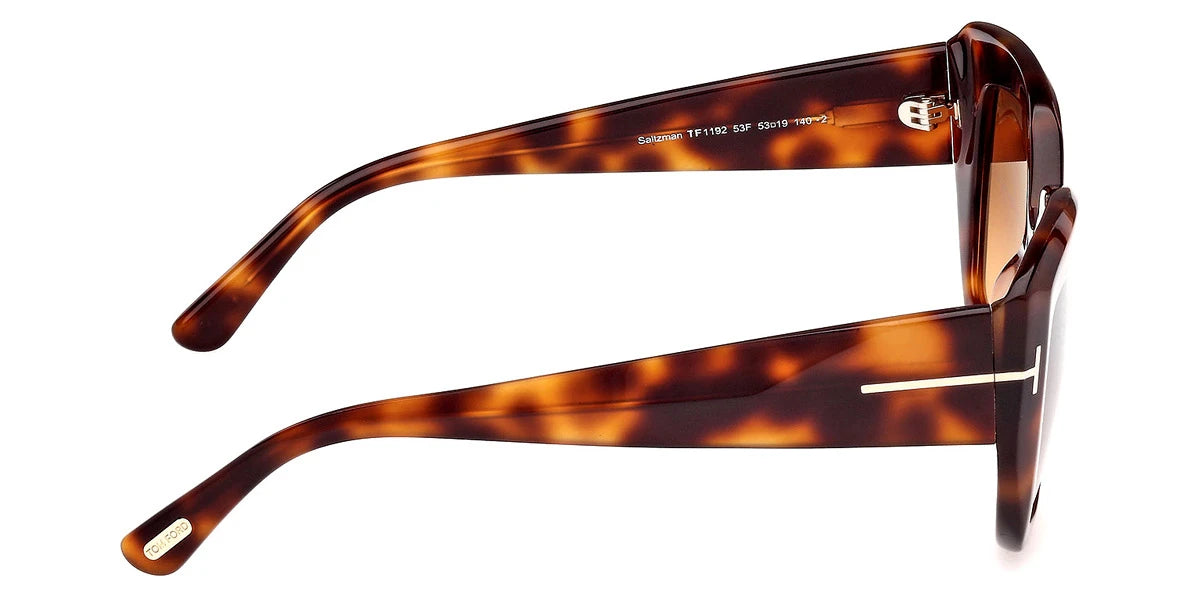 Dark Havana (52B) Sunglasses with Gradient Smoke lenses (FT1192 Saltzman 52B 53) by Tom Ford™. Size: 53-19-140, Shape: Butterfly, Material: Plastic.
