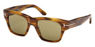 Dark Havana (52N) Sunglasses with Green lenses (FT1280 Caine-02 52N 53) by Tom Ford™. Size: 53-19-145, Shape: Square, Material: Plastic.