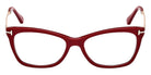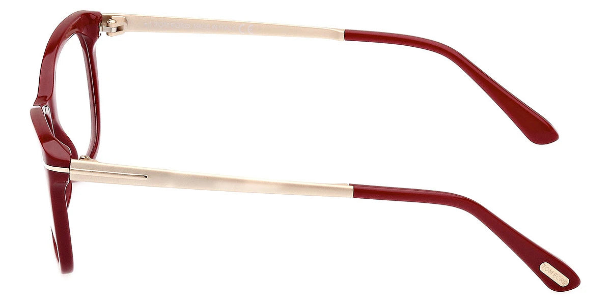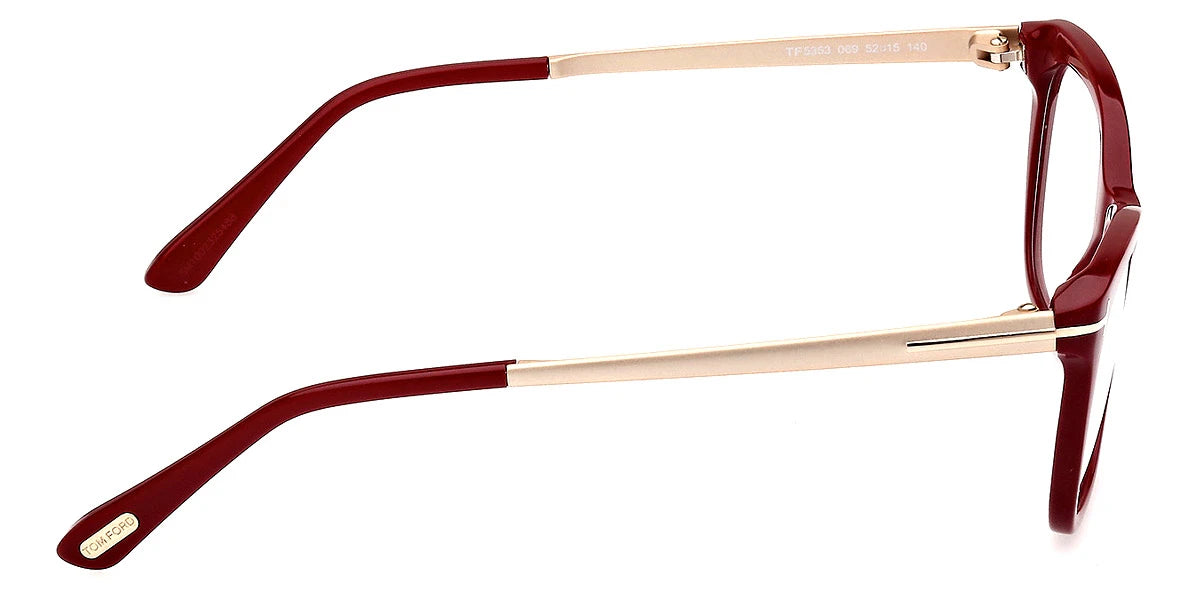 Shiny Burgundy/Matte Pale Gold/T Logo (069) Eyeglasses with Blue Block lenses (FT5353 069 52) by Tom Ford™. Size: 52-15-140, Shape: Geometric, Material: Plastic.