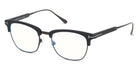 FT5590-F-B Eyeglasses by Tom Ford™. Shape: Geometric, Material: Plastic, Frame Type: Full Rim. This model is available in three different color combinations and sizes. The exclusive Tom Ford eyeglasses collection is inspired by the elegance of the iconic 1950s silhouettes and the extravagance of the 1970s. Featuring the finest combination of metal and acetate, the frames are both lightweight and durable. The spectacles boast various refined details, including the brand’s famous ‘T’ metal logo on the temples, as well as bold color combinations and unique patterns, reflecting the latest fashion trends. Some models feature Blue Block lenses that prevent and reduce eye strain when using digital devices, thus improving visual comfort while completing the outfit as a stylish accessory.