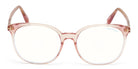 FT5671-F-B Eyeglasses by Tom Ford™. Shape: Round, Material: Plastic, Frame Type: Full Rim. This model is available in three different color combinations and sizes. The exclusive Tom Ford eyeglasses collection is inspired by the elegance of the iconic 1950s silhouettes and the extravagance of the 1970s. Featuring the finest combination of metal and acetate, the frames are both lightweight and durable. The spectacles boast various refined details, including the brand’s famous ‘T’ metal logo on the temples, as well as bold color combinations and unique patterns, reflecting the latest fashion trends. Some models feature Blue Block lenses that prevent and reduce eye strain when using digital devices, thus improving visual comfort while completing the outfit as a stylish accessory.
