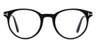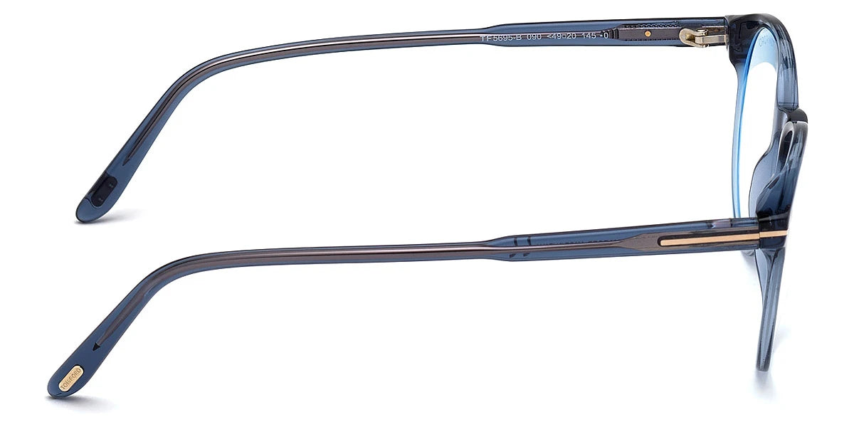 FT5695-B Glasses by Tom Ford™. The round shape design features a full rim plastic frame. This model is available in seven different color combinations and sizes. The exclusive Tom Ford eyeglasses collection is inspired by the elegance of the iconic 1950s silhouettes and the extravagance of the 1970s. Featuring the finest combination of metal and acetate, the frames are both lightweight and durable. The spectacles boast various refined details, including the brand’s famous ‘T’ metal logo on the temples, as well as bold color combinations and unique patterns, reflecting the latest fashion trends. Some models feature Blue Block lenses that prevent and reduce eye strain when using digital devices, thus improving visual comfort while completing the outfit as a stylish accessory.