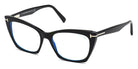 Shiny Black (001) Eyeglasses (FT5709-B 001 54) by Tom Ford™. Size: 54-17-140, Shape: Cat-Eye, Material: Plastic.