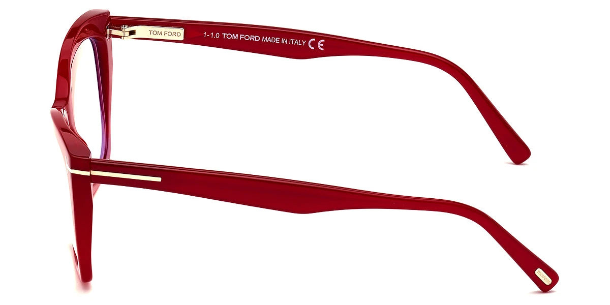 FT5709-B Eyeglasses by Tom Ford™. Shape: Cat-Eye, Material: Plastic, Frame Type: Full Rim. This model is available in two different color combinations and sizes. The exclusive Tom Ford eyeglasses collection is inspired by the elegance of the iconic 1950s silhouettes and the extravagance of the 1970s. Featuring the finest combination of metal and acetate, the frames are both lightweight and durable. The spectacles boast various refined details, including the brand’s famous ‘T’ metal logo on the temples, as well as bold color combinations and unique patterns, reflecting the latest fashion trends. Some models feature Blue Block lenses that prevent and reduce eye strain when using digital devices, thus improving visual comfort while completing the outfit as a stylish accessory.