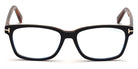 FT5713-B Eyeglasses by Tom Ford™. Shape: Rectangle, Material: Plastic, Frame Type: Full Rim. This model is available in eight different color combinations and sizes. The exclusive Tom Ford eyeglasses collection is inspired by the elegance of the iconic 1950s silhouettes and the extravagance of the 1970s. Featuring the finest combination of metal and acetate, the frames are both lightweight and durable. The spectacles boast various refined details, including the brand’s famous ‘T’ metal logo on the temples, as well as bold color combinations and unique patterns, reflecting the latest fashion trends. Some models feature Blue Block lenses that prevent and reduce eye strain when using digital devices, thus improving visual comfort while completing the outfit as a stylish accessory.