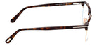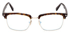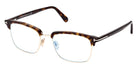 FT5801-B Eyeglasses by Tom Ford™. The browline shape design feature a full rim plastic frame. This model is available in three different color combinations and sizes. The exclusive Tom Ford eyeglasses collection is inspired by the elegance of the iconic 1950s silhouettes and the extravagance of the 1970s. Featuring the finest combination of metal and acetate, the frames are both lightweight and durable. The spectacles boast various refined details, including the brand's famous ‘T' metal logo on the temples, as well as bold color combinations and unique patterns, reflecting the latest fashion trends. Some models feature Blue Block lenses that prevent and reduce eye strain when using digital devices, thus improving visual comfort while completing the outfit as a stylish accessory.