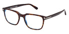 Shiny Black T Logo (001) Eyeglasses with Blue Block lenses (FT5818-F-B 001 53) by Tom Ford™. Size: 53-19-145, Shape: Square, Material: Plastic.