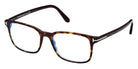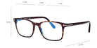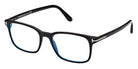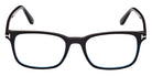 Shiny Black/T Logo (001) Eyeglasses with Blue Block lenses (FT5831-B 001 51) by Tom Ford™. Size: 51-18-145, Shape: Square, Material: Plastic.