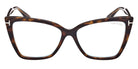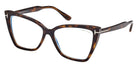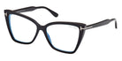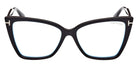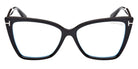 Shiny Black/T Logo (001) Eyeglasses with Blue Block lenses (FT5844-B 001 55) by Tom Ford™. Size: 55-15-140, Shape: Cat-Eye, Material: Injected.