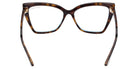 FT5844-B Eyeglasses by Tom Ford™. The cat-eye shape design feature a full rim injected frame. This model is available in four different color combinations and sizes. The exclusive Tom Ford eyeglasses collection is inspired by the elegance of the iconic 1950s silhouettes and the extravagance of the 1970s. Featuring the finest combination of metal and acetate, the frames are both lightweight and durable. The spectacles boast various refined details, including the brand's famous ‘T' metal logo on the temples, as well as bold color combinations and unique patterns, reflecting the latest fashion trends. Some models feature Blue Block lenses that prevent and reduce eye strain when using digital devices, thus improving visual comfort while completing the outfit as a stylish accessory.