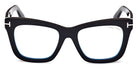FT5881-B Eyeglasses by Tom Ford™. The square shape design feature a full rim plastic frame. This model is available in three different color combinations and sizes. The exclusive Tom Ford eyeglasses collection is inspired by the elegance of the iconic 1950s silhouettes and the extravagance of the 1970s. Featuring the finest combination of metal and acetate, the frames are both lightweight and durable. The spectacles boast various refined details, including the brand's famous ‘T' metal logo on the temples, as well as bold color combinations and unique patterns, reflecting the latest fashion trends. Some models feature Blue Block lenses that prevent and reduce eye strain when using digital devices, thus improving visual comfort while completing the outfit as a stylish accessory.