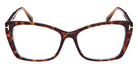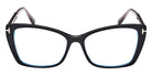 Classic Dark Havana/Shiny Rose Gold/T Logo (052) Eyeglasses with Blue Block lenses (FT5893-B 052 55) by Tom Ford™. Size: 55-16-140, Shape: Butterfly, Material: Plastic.