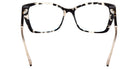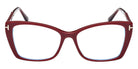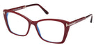 FT5893-B Eyeglasses by Tom Ford™. The butterfly shape design feature a full rim plastic frame. This model is available in four different color combinations and sizes. The exclusive Tom Ford eyeglasses collection is inspired by the elegance of the iconic 1950s silhouettes and the extravagance of the 1970s. Featuring the finest combination of metal and acetate, the frames are both lightweight and durable. The spectacles boast various refined details, including the brand's famous ‘T' metal logo on the temples, as well as bold color combinations and unique patterns, reflecting the latest fashion trends. Some models feature Blue Block lenses that prevent and reduce eye strain when using digital devices, thus improving visual comfort while completing the outfit as a stylish accessory.