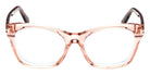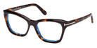 FT5909-B Eyeglasses by Tom Ford™. The cat-eye shape design feature a full rim plastic frame. This model is available in two different color combinations and sizes. The exclusive Tom Ford eyeglasses collection is inspired by the elegance of the iconic 1950s silhouettes and the extravagance of the 1970s. Featuring the finest combination of metal and acetate, the frames are both lightweight and durable. The spectacles boast various refined details, including the brand's famous ‘T' metal logo on the temples, as well as bold color combinations and unique patterns, reflecting the latest fashion trends. Some models feature Blue Block lenses that prevent and reduce eye strain when using digital devices, thus improving visual comfort while completing the outfit as a stylish accessory.