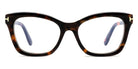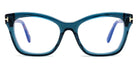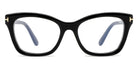 Shiny Black (001) Eyeglasses with Blue Filter lenses (FT5909-B 001 53) by Tom Ford™. Size: 53-18-140, Shape: Cat-Eye, Material: Plastic.